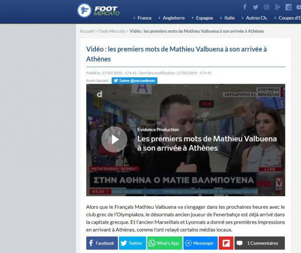 Mercato 365: «Ο Ματιέ Βαλμπουενά συνεχίζει στον Ολυμπιακό»
