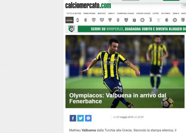 Calcio Mercato: «Ολυμπιακός: Ο Βαλμπουενά έρχεται από την Φενέρμπαχτσε»