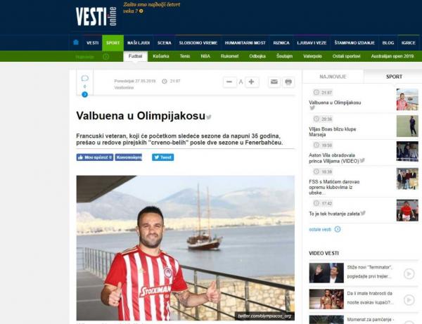 Vesti: «Στον Ολυμπιακό ο Βαλμπουενά»