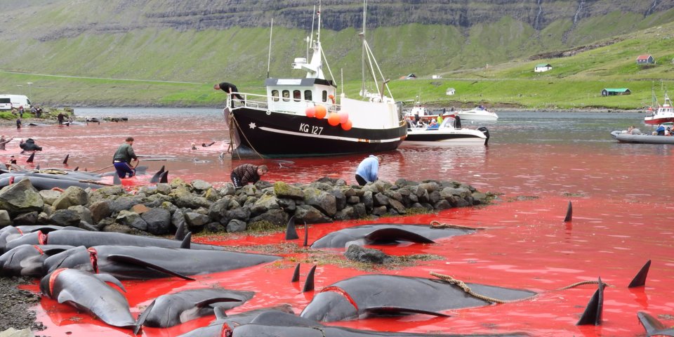 Νωρίτερα, άλλοι ψαράδες είχαν φροντίσει να οδηγήσουν με τα πλοία τους τις φάλαινες και τα δελφίνια στον κόλπο της πόλης Τορσχαβν, της πρωτεύουσας ενός εκ των νησιών.