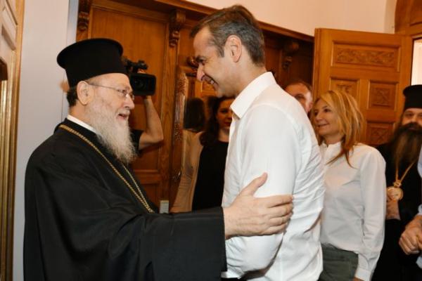Ο κ. Μητσοτάκης εξήρε το κοινωνικό έργο της Εκκλησίας, το οποίο -όπως είπε- είναι πολύ σημαντικό και υπενθύμισε ότι «εμείς σταθήκαμε από την πρώτη στιγμή δίπλα στους κληρικούς όλων των βαθμίδων». Τόνισε ακόμη ότι «η Νέα Δημοκρατία απέδειξε πως με μια σωστή κεντροδεξιά πολιτική κατόρθωσε να περιορίσει την απήχηση των ακραίων δυνάμεων, κάτι που έδειξαν και τα αποτελέσματα των τελευταίων εκλογών». Υπογράμμισε ότι «ένας μετριοπαθής, πατριωτικός λόγος θα λειτουργήσει ευεργετικά για την άμβλυνση των άκρων». Και πρόσθεσε: «Όπως είπα στον μακαριώτατο, δεν υφίσταται για εμάς ζήτημα αλλαγής του άρθρου 3 και δεν είμαι διατεθειμένος να παίξω με λεπτές ισορροπίες που έχουν διαμορφωθεί στο βάθος των αιώνων». Και μίλησε για συναινετικές λύσεις στα εκκρεμή ζητήματα που υπάρχουν στις σχέσεις Κράτους-Εκκλησίας. «Θα καθήσουμε με καλή διάθεση να μιλήσουμε για τους διακριτούς ρόλους Κράτους και Εκκλησίας και πώς μπορούν να βοηθήσουν την κοινωνία. Το ζήτημα δεν είναι μόνο οικονομικό. Η Εκκλησία είναι το στήριγμα πολλών ανθρώπων. Η δική μου δουλειά, αυτή τη στιγμή, είναι να ενώσω τη χώρα. Όπως εσείς διακονείτε όλο το ποίμνιο, έτσι και εγώ πρέπει να γίνω πρωθυπουργός για όλους τους Έλληνες. Ο λόγος μου είναι ενωτικός και όχι διχαστικός. Οι ακραίες φωνές που καπηλεύονται την Εκκλησία πρέπει να απομακρυνθούν».