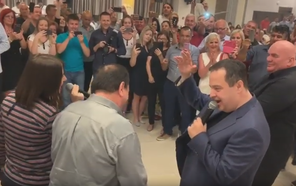 Ο Σέρβος ΥΠΕΞ είχε την ευκαιρία να πιάσει το μικρόφωνο και να τραγουδήσει ένα αγαπημένο του ελληνικό τραγούδι «Μη μου θυμώνεις μάτια μου», σπάζοντας πιάτα και δείχνοντας να το γλεντάει με την ψυχή του.