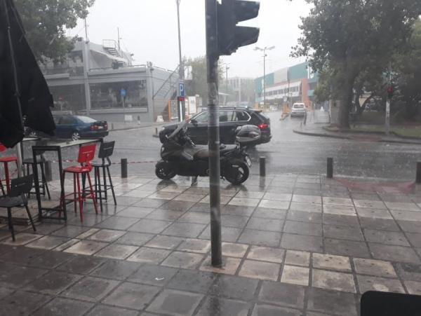 Άστατος παραμένει ο καιρός στη Θεσσαλονίκη. Μετά τη νεροποντή που σημειώθηκε το μεσημέρι, μετατρέποντας τους δρόμους σε ποτάμια, σημειώθηκε και δεύτερη καταιγίδα.