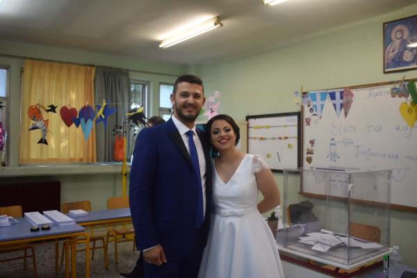 Σύμφωνα με το onlarissa.gr, η νύφη και ο γαμπρός έφθασαν στις 8.30 περίπου το πρωί στο εκλογικό κέντρο που λειτουργεί στο 13ο δημοτικό σχολείο στην συνοικία Αβέρωφ για να ψηφίσουν, ερχόμενοι από το νυχτερινό κέντρο όπου χθες γιόρτασαν την ένωσή τους με τα δεσμά του γάμου.