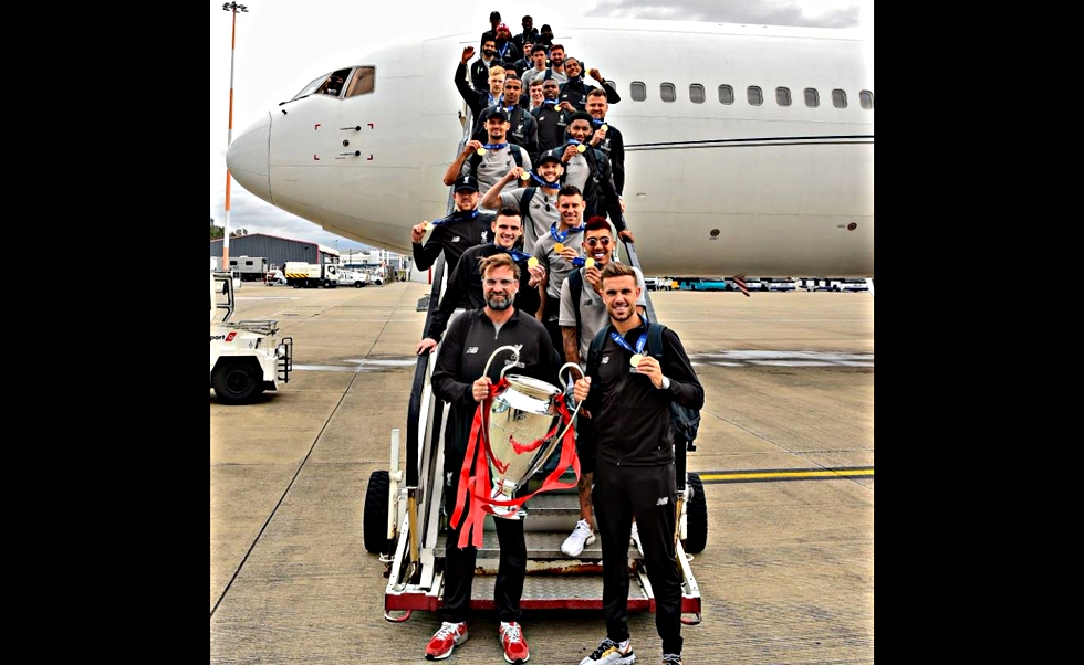 Η αποστολή της Λίβερπουλ επέστρεψε στα πάτρια εδάφη έχοντας στις αποσκευές της την «κούπα με τα αυτιά», λαμβάνοντας μια αποθεωτική αποδοχή από το αεροδρόμιο κιόλας.