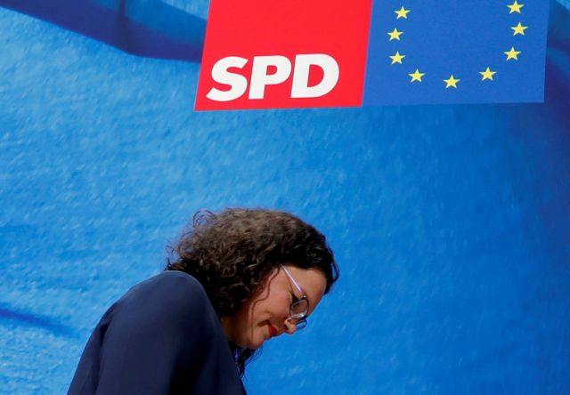 Το SPD που συμμετέχει στον κυβερνητικό συνασπισμό της Άνγκελα Μέρκελ συγκέντρωσε ποσοστό μόλις 15,8% στις εκλογές του Ευρωκοινοβουλίου, πίσω από τους Πράσινους.
