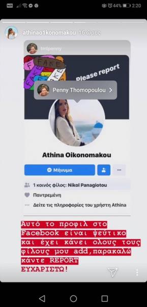 Η ηθοποιός ωστόσο δεν έμεινε άπραγη αλλά ανέβασε μια φωτό όπου φαινόταν το ψεύτικο προφίλ, ζητώντας από τους ακολούθους της να το αναφέρουν ως μη αληθινό, προκειμένου να κλείσει από τους διαχειριστές του Facebook.