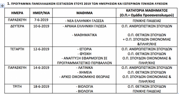 Δείτε το πρόγραμμα για τα γενικά λύκεια