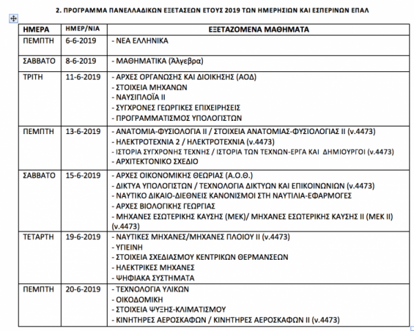 Δείτε το πρόγραμμα για τα ΕΠΑΛ
