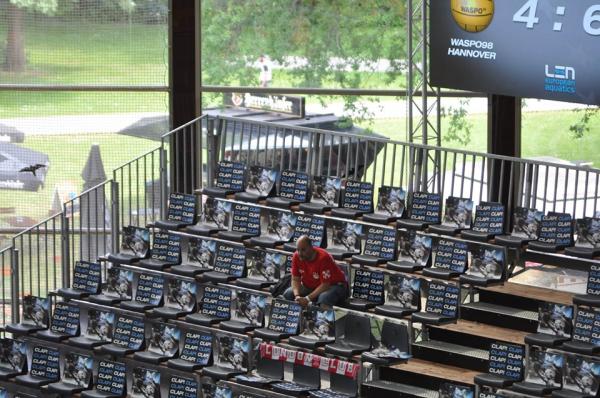 Όχι μόνο κάλυψε χιλιάδες χιλιόμετρα για να φτάσει από το Λονδίνο (όπως προδίδει το κασκόλ του) στο Ανόβερο, πήρε θέση στην κερκίδα του κολυμβητηρίου τέσσερις ώρες πριν το παιχνίδι!