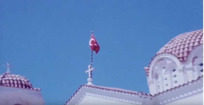 Σε άλλο προκλητικό πλάνο φαίνεται η κόκκινη ημισέληνος να κυματίζει σε ελληνορθόδοξο ναό.