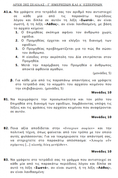 Τα θέματα στα οποία διαγωνίστηκαν σήμερα οι υποψήφιοι των ΓΕΛ (Αρχαία Ελληνική Γλώσσα και Μαθηματικά) ανάλογα με την ομάδα προσανατολισμού δόθηκαν στη δημοσιότητα από το υπουργείο Παιδείας