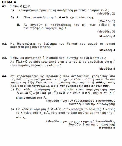 Τα θέματα στα οποία διαγωνίστηκαν σήμερα οι υποψήφιοι των ΓΕΛ (Αρχαία Ελληνική Γλώσσα και Μαθηματικά) ανάλογα με την ομάδα προσανατολισμού δόθηκαν στη δημοσιότητα από το υπουργείο Παιδείας.