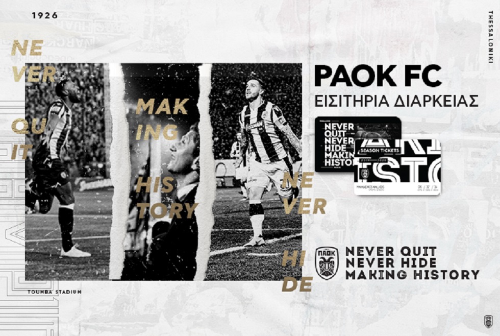 Η προσπάθεια για τη διατήρηση της κορυφής στις εγχώριες διοργανώσεις και την επίτευξη της πρόκλησης των ομίλων του Champions League ξεκινά από την κερκίδα και την παρουσία του κόσμου στο γήπεδο της Τούμπας. Από τα εισιτήρια διαρκείας.
