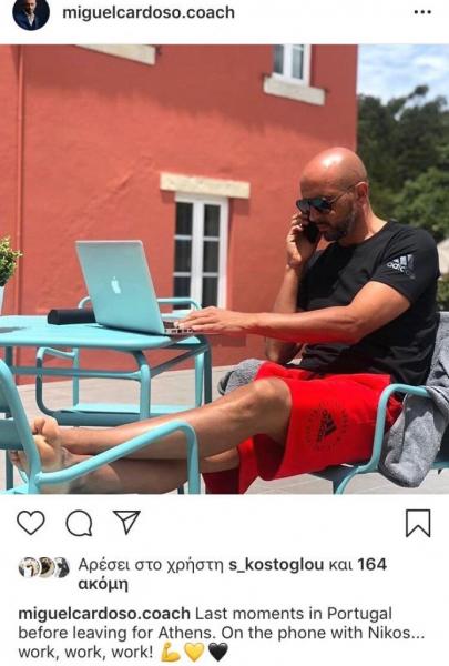 Συγκεκριμένα, ο Καρντόσο έγραψε: «Τελευταίες στιγμές στην Πορτογαλία, πριν φύγω για Αθήνα. Στο τηλέφωνο με τον Νίκο (σ.σ. Λυμπερόπουλο). Δουλειά, δουλειά, δουλειά».