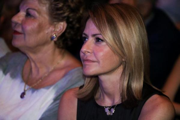 Η Τζένη Μπαλατσινού, απλή, κομψή και εντυπωσιακή, παρακολούθησε την ομιλία του συζύγου της στο «Αθηνών Αρένα».