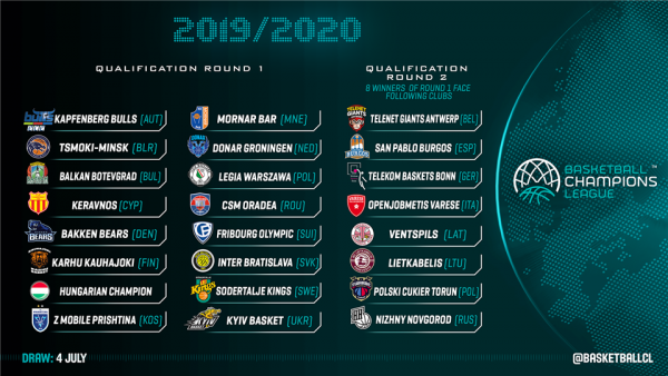 Η Ελλάδα θα έχει ξανά τρεις ομάδες που θα την εκπροσωπήσουν στο Basketball Champions League τη σεζόν 2019-20: την ΑΕΚ τον ΠΑΟΚ και το Περιστέρι. Πέρσι στη θέση της ομάδας του Αργύρη Πεδουλάκη ήταν ο Προμηθέας Πατρών.
