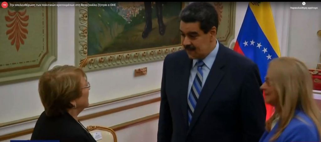 Στη Βενεζουέλα βρίσκεται η ύπατη αρμοστής του ΟΗΕ, για να ανθρώπινα δικαιώματα, Μισέλ Μπασελέ, όπου έχει συναντήσεις τόσο με τον Νικολάς Μαδούρο, όσο και με τον επικεφαλής της αντιπολίτευσης και αυτοανακηρυχθέντα Πρόεδρο, Χουάν Γκουαϊδό.