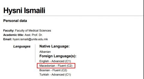 Το σημαντικότερο όμως είναι ότι στο βιογραφικό του (κάτω), ο προταθείς ως υπουργός Πολιτισμού αναφέρει τη «μακεδονική» γλώσσα ως… ξένη.