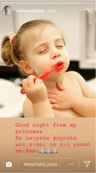 Την φωτογραφία συνόδευσε με την λεζάντα: «Σε λατρεύω ψυχούλα μου, είσαι το πιο γλυκό παιδάκι, Goodnight from my princess (Καληνύχτα από την πριγκίπισσα μου)».