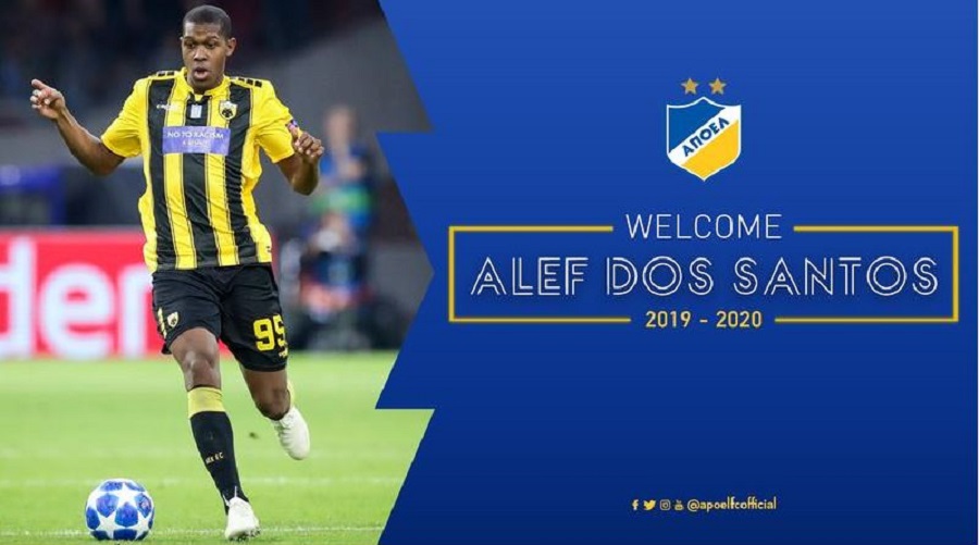Στην Κύπρο θα συνεχίσει την καριέρα του ο Άλεφ, ο οποίος από εδώ και πέρα θα αγωνίζεται με τα χρώματα του ΑΠΟΕΛ. Η κυπριακή ομάδα ανακοίνωσε την απόκτησή του βραζιλιάνου ως δανεικό από την Μπράγκα για έναν χρόνο, ενώ παράλληλα έχει και δικαίωμα αγοράς του.