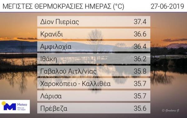 Την Πέμπτη, σύμφωνα με το meteo, η θερμοκρασία ξεπέρασε τοπικά τους 37 βαθμούς Κελσίου.