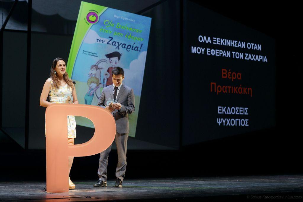 Ελληνική εφηβική λογοτεχνία: Όλα ξεκίνησαν όταν μου έφεραν τον Ζαχαρία, Βέρα Πρατικάκη (εικονογράφηση: Ρένια Μεταλληνού), εκδόσεις Ψυχογιός. Το βραβείο απένειμε η ερμηνεύτρια, Φωτεινή Δάρρα.