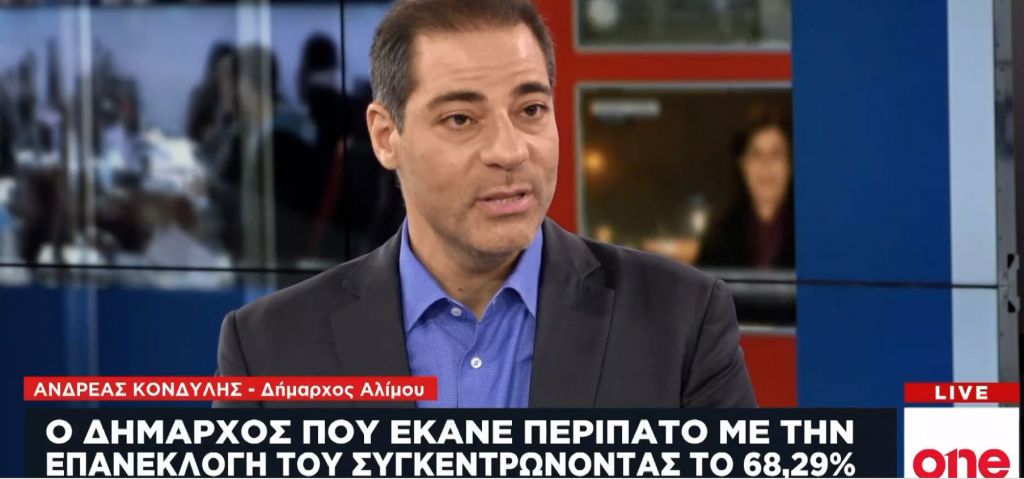 Καλεσμένος στην εκπομπή One Direct Weekend βρέθηκε ο επανεκλεγείς δήμαρχος Αλίμου, Ανδρέας Κονδύλης. Μεταξύ άλλων ο κ. Κονδύλης αναφέρθηκε στα έργα της πρώτης θητείας του, καθώς και σε αυτά που σκοπεύει να κάνει την επόμενη, η οποία θα ξεκινήσει τυπικά από τον Σεπτέμβριο.