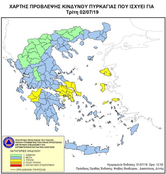 Σύμφωνα με τον χάρτη της Προστασίας του Πολίτη, η Αττική η μισή Εύβοια, η Ηλεία και τα νησιά του Βορειοανατολικού Αιγαίου έχουν τον μεγαλύτερο βαθμό επικινδυνότητας για το ξέσπασμα πυρκαγιών.