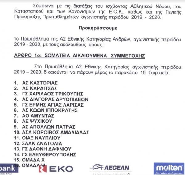 Η προκήρυξη της ΕΟΚ που βγαίνει κάθε καλοκαίρι για το πρωτάθλημα τις Α2 μπάσκετ ανδρών δημοσιεύτηκε και φέτος εν όψει της περιόδου 2019-20 περιλαμβάνοντας 14 ομάδες και δύο… άγνωστες.