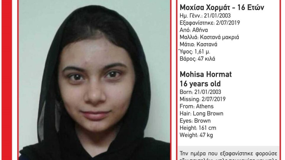 Η 16χρονη Αφγανή Μοχίσα Χορμάτ αγνοείται από τις 2 Ιουλίου, όταν κι εξαφανίστηκε κατά τις απογευματινές ώρες από την περιοχή της Αθήνας.