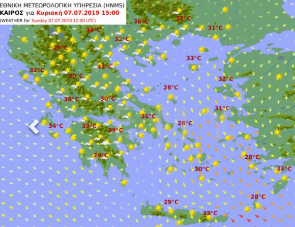Ο χάρτης της ΕΜΥ για την Κυριακή 7 Ιουλίου