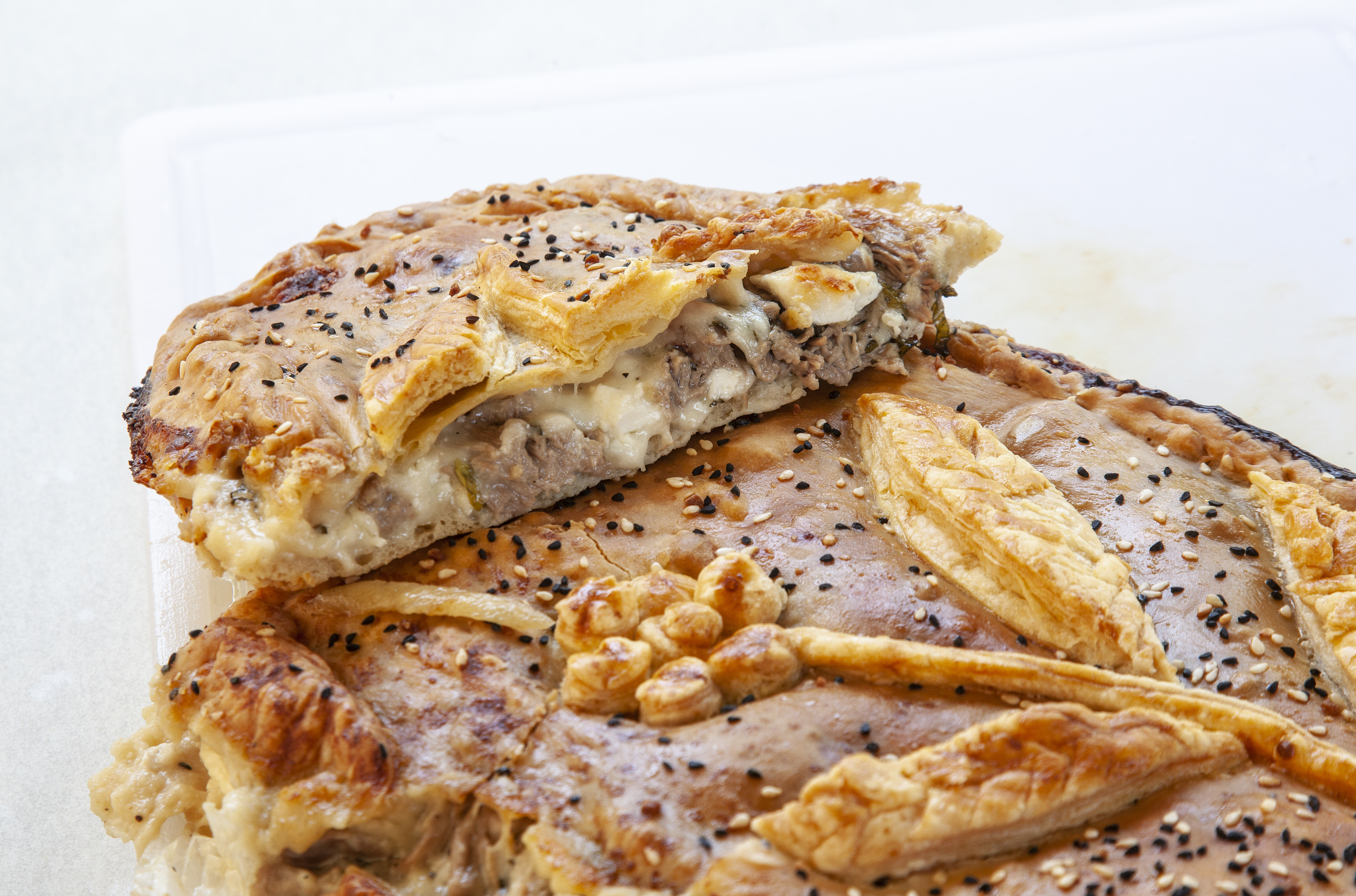 Και μετά είναι και η «δύσκολη», η γιορτινή. Η χανιώτικη τούρτα- που μόνο τούρτα δεν είναι. Μια πίτα φτιαγμένη με χειροποίητο φύλλο, αρνί και πολλά τυριά, ένα εξαίσιο έδεσμα που θέλει τον χρόνο και τον τρόπο του.