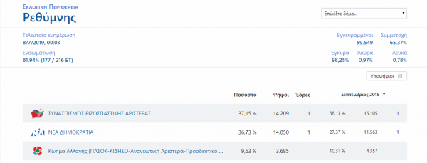 Κι αυτό καθώς ΝΔ και ΣΥΡΙΖΑ βρίσκονται πάρα πολύ κοντά στον αριθμό ψήφων, με μόλις μερικές δεκάδες ψήφους διαφορά.