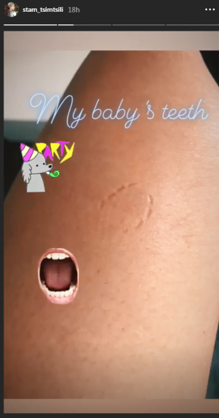 Συγκεκριμένα η πανέμορφη Σταματίνα Τσιμτσιλή δημοσίευσε μία φωτογραφία από το σημάδι που ο μικρός της γιος άφησε στο πόδι της και έγραψε χαρακτηριστικά: «My baby’s teeth (Τα δοντάκια του μωρού μου)».