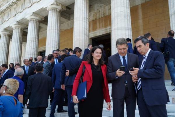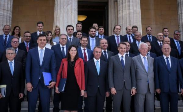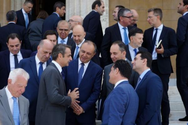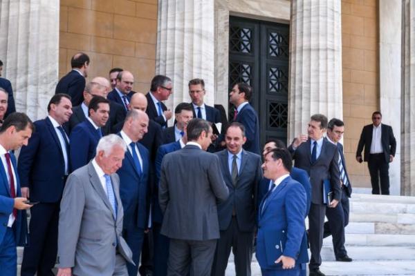 Στο περιστύλιο της Βουλής βρέθηκαν χθες όλα τα μέλη του υπουργικού συμβουλίου για την καθιερωμένη αναμνηστική φωτογραφία.