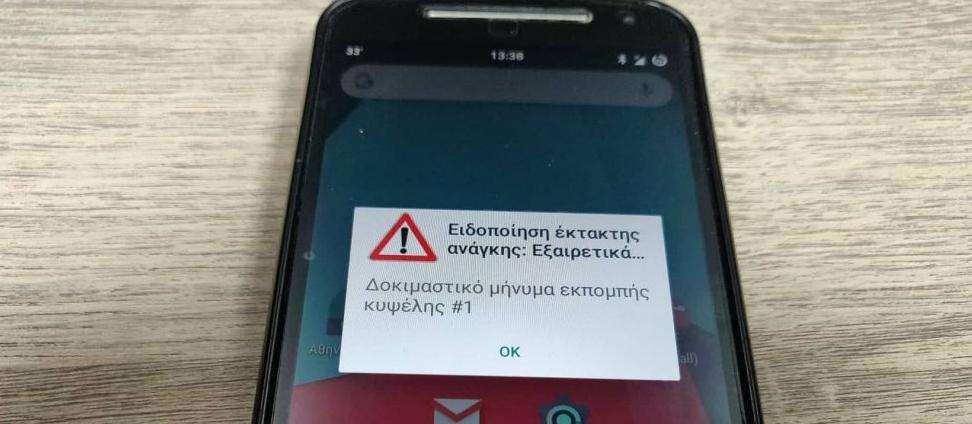 Συγκεκριμένα, στην δοκιμαστική άσκηση ειδοποίησης που πραγματοποιήθηκε από το κέντρο επιχειρήσεων της πολιτικής προστασίας, εστάλη στα κινητά τηλέφωνα μήνυμα που έγραφε «Ειδοποίηση έκτακτης ανάγκης», με την υποσημείωση ότι πρόκειται για δοκιμαστική εκπομπή μηνύματος.