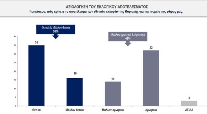 Υψηλή είναι, όπως φαίνεται, η αποδοχή της νέας κυβέρνησης, τη στιγμή που το αποτέλεσμα των της κάλπης κρίνεται θετικό για τον ΣΥΡΙΖΑ. Αυτά, μεταξύ άλλων, αναδεικνύει η πρώτη μετεκλογική δημοσκόπηση που διενεργήθηκε από την Κάπα Research μόλις πέντε μέρες μετά τις εθνικές κάλπες της 7ης Ιουλίου, οι οποίες σηματοδότησαν την έλευση της Νέας Δημοκρατίας στην εξουσία.