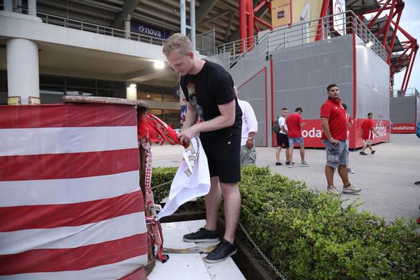 Συγκεκριμένα, λίγες ώρες πριν τη σέντρα της αναμέτρησης, οι οπαδοί των Ρεντς που είναι στην Αθήνα για το μεγάλο φιλικό, πήγαν στο μνημείο των θυμάτων της Θύρας 7 που βρίσκεται έξω από το φαληρικό γήπεδο και τίμησαν τη μνήμη των 21 παιδιών, που έχασαν τη ζωή τους στην τραγωδία της 8ης Φεβρουαρίου του 1981.