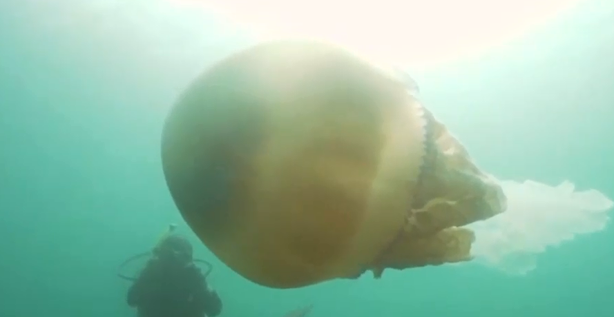 Μια μέδουσα σε μέγεθος ανθρώπου συνάντησαν δύο δύτες κατά την διάρκεια του καταδυτικού τους ταξιδιού στην Κορνουάλη της Βρετανίας.