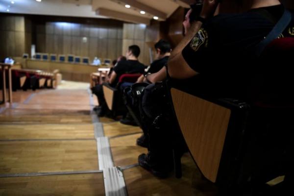 [Παρατάσσονται αστυνομικοί των ΕΚΑΜ με κουκούλες φουλ φέις δίπλα στο εδώλιο των κατηγορουμένων ] Πρόεδρος προς τον αστυνομικό: Να σας πω, δε χρειάζεται να είστε εδώ μπροστά, περάστε λίγο πίσω.