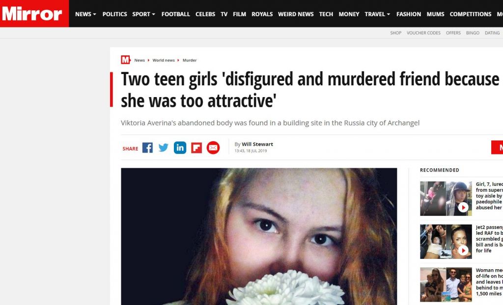 Σύμφωνα με τη Daily Mail, το κορίτσι που δολοφονήθηκε ονομάζεται Βικτόρια Αβερίνα και το κατακρεουργημένο σώμα του βρέθηκε σε εγκαταλειμμένο κτίριο στη πόλη Αρκανγκελσκ.