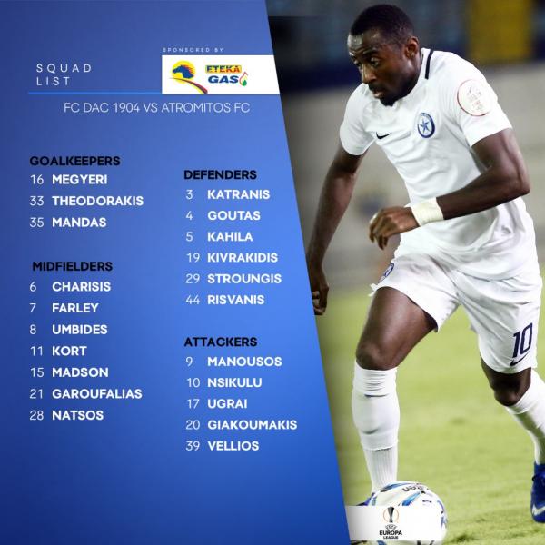 Europa League : Η αποστολή του Ατρόμητου για Σλοβακία