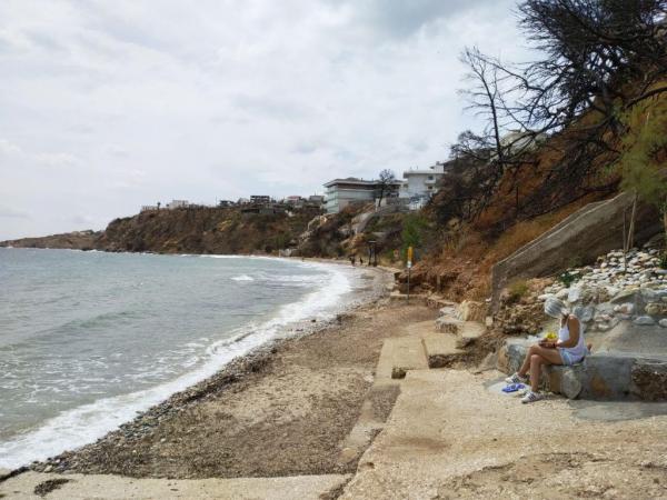 «Υπήρχε το κάμπινγκ εδώ δίπλα και ερχόταν πολύς κόσμος κάθε καλοκαίρι. Κάηκε… Δεν υπάρχει τίποτα. Έρχονται πολλοί ξένοι που έχουν διαβάσει γι’ αυτό ή το έχουν ξαναεπισκεφθεί στο παρελθόν αλλά μάταια. Βλέπουν πώς έχουν τα πράγματα και φεύγουν. Σε ακτίνα ενός χιλιομέτρου δεν υπάρχει τίποτα», λέει με πικρία ο Βαγγέλης Γ. ένας από τους λίγους «τυχερούς», καθώς είδε το μικρό εξοχικό του να γλιτώνει την ώρα που άλλα σπίτια εκατέρωθεν γίνονταν βορά της πυρκαγιάς.