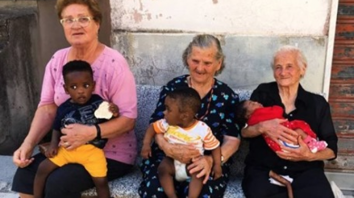 Αυτό μας δείχνει μια φωτογραφία που αναρτήθηκε στην facebook-ική ομάδα του Campoli, «Sei di Campoli se…». Στη φωτογραφία απεικονίζονται τρεις ηλικιωμένες γυναίκες που κρατούν στις αγκαλιές τους τρία προσφυγόπουλα από το κοντινό κεντρο υποδοχής της περιοχής.