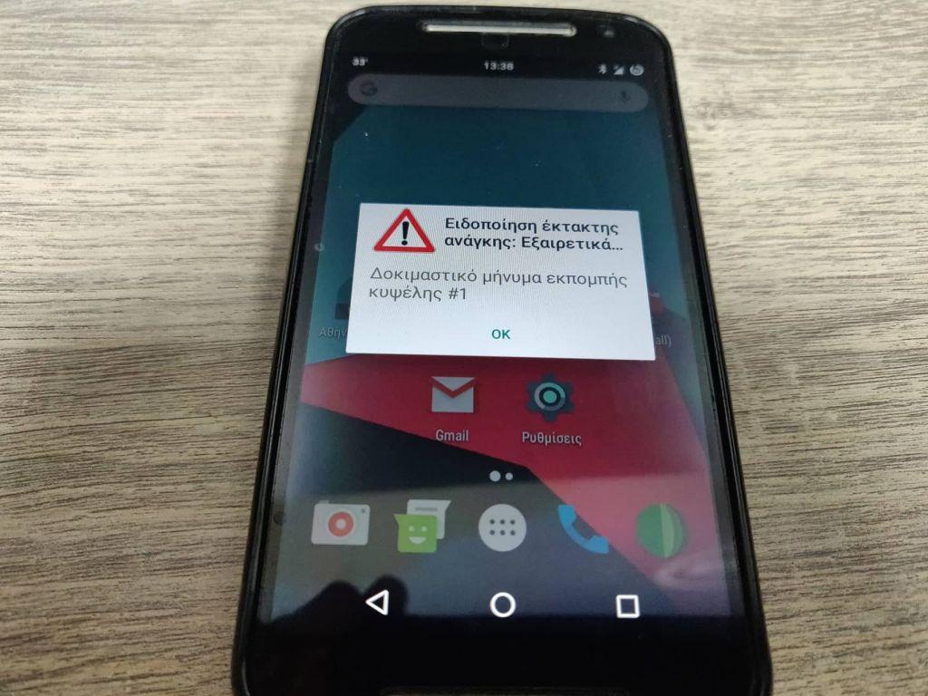 «ΓΕΝΙΚΗ ΓΡΑΜΜΑΤΕΙΑ ΠΟΛΙΤΙΚΗΣ ΠΡΟΣΤΑΣΙΑΣ ΗΗ-ΜΜ-ΕΕΕΕ ΩΩ:ΛΛ ΔΟΚΙΜΑΣΤΙΚΟ ΜΗΝΥΜΑ ΝΕΟΥ ΕΘΝΙΚΟΥ ΣΥΣΤΗΜΑΤΟΣ ΕΓΚΑΙΡΗΣ ΠΡΟΕΙΔΟΠΟΙΗΣΗΣ ΔΕΝ ΑΠΑΙΤΕΙΤΑΙ ΚΑΜΙΑ ΕΝΕΡΓΕΙΑ ΑΠΟ ΣΑΣ» .