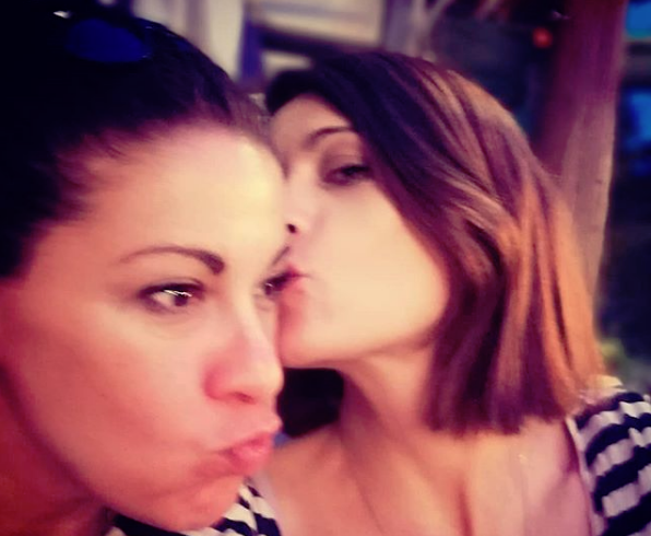 Η γνωστή ηθοποιός αγκαλιάζει και δίνει ένα ζεστό φιλί στην αδερφή της. Η φωτό είναι από τα γενέθλια της Εβίτας Παπαχαραλάμπους, αδερφή της Άννας Μαρίας.