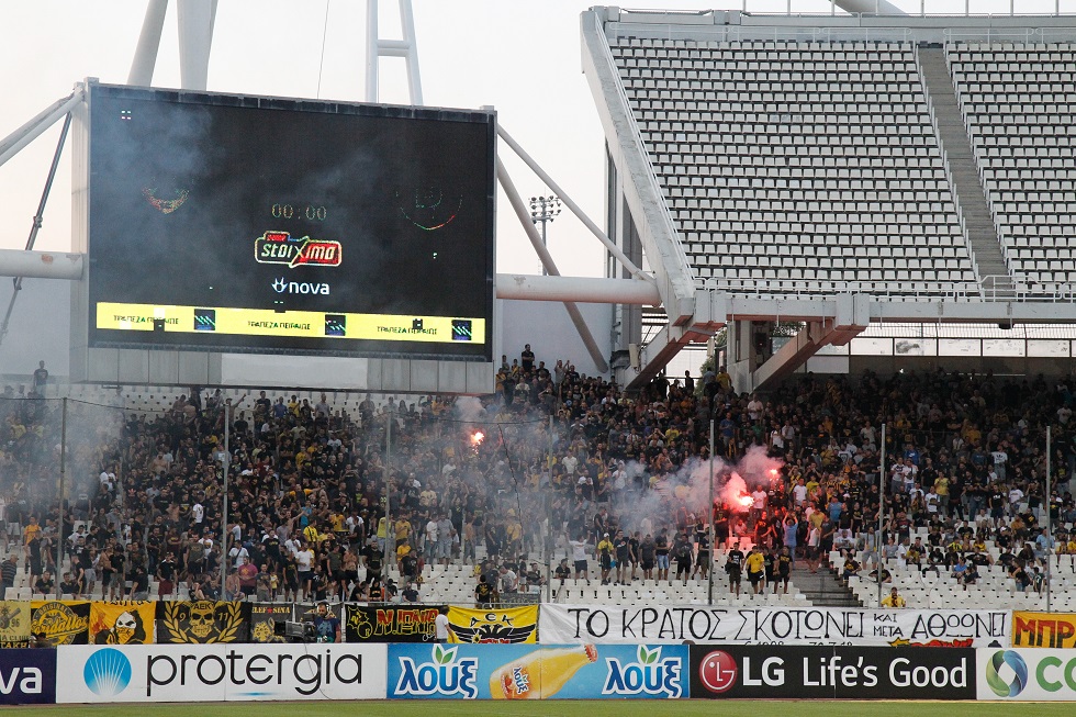 Οι οργανωμένοι οπαδοί της ΑΕΚ σήκωσαν στο ΟΑΚΑ πανό για την αποφυλάκιση του Επανεινώνδα Κορκονέα.