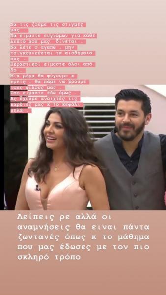 «Να τις ζούμε τις στιγμές μας. Να είμαστε ευγνώμων για κάθε λεπτό που μας δίνεται. Να λέτε σε αγαπώ, μην τσιγκουνεύεστε τα αισθήματά σας. Περαστικοί είμαστε όλοι από εδώ. Μια μέρα θα φύγουμε και εμείς. Θα πάμε να βρούμε τους φίλους μας. Όσο είμαστε εδώ όμως, ας έχουμε ανοιχτές τις καρδιές μας και το κεφάλι ψηλά.