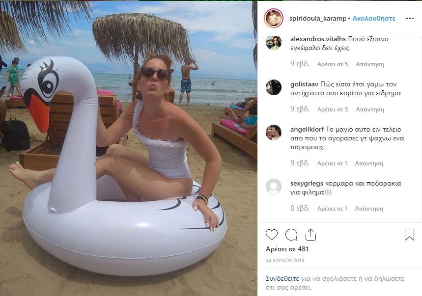Φορώντας λευκό ολόσωμο μαγιό, «μαγνήτισε» τα βλέμματα των υπόλοιπων λουόμενων όπως και των διαδικτυακών της φίλων, οι οποίοι τη χαρακτηρίζουν «κορμάρα και σέξι».